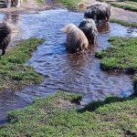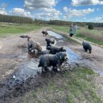 Een mooi gebied met uitgestrekte heide en grasvelden en redelijk veel bos. Een leuke groep mensen en honden. Waarvan niemand bang was dat de hond vies werd. Op de foto’s is het goed te zien.