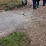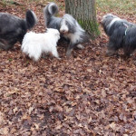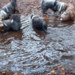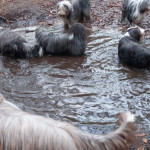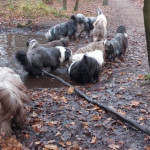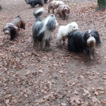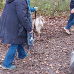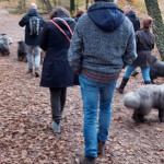 Een grote groep honden en mensen gingen om 11.10 uur van start. Al gauw was te zien dat de honden de weg wel wisten. Wachten voor het hek om erdoor te gaan om goed te rennen en te spelen. Nou spelen hebben ze gedaan. Over gevallen bomen, door goed gevulde plassen en weer terug om te kijken of de baasjes nog steeds bij het hek staan te praten. Dan maar weer terug naar de roedel. Een van de beardies volgde in haar enthousiasme de verkeerde hond en vertrok met hem richting parkeerterrein. Gelukkig valt het altijd op bij de baasjes in de achterhoede. Een paar waarschuwingen naar het baasje en die kwam hem al halen en terug in de roedel plaatsen. De hele roedel begroette hem op beardiewijze. Een vrolijk kwispelende staart en hier en daar een lik en snel door naar de bomen en plassen. Na ruim 2 uur begaven de honden en hun baasjes zich naar de uitgang. Natuurlijk direct door naar Bospaviljoen ’t Leesten. Natuurlijk stond het water voor ze klaar. Onderweg hadden ze er veel trek in gekregen. De bediening werd op de proef gesteld en zijn geslaagd. De baasjes werden voorzien van een consumptie. Uiteindelijk nog een lekker zakje met botjes. Kluifjes en kip en vleessticks ging iedereen tevreden huiswaarts.